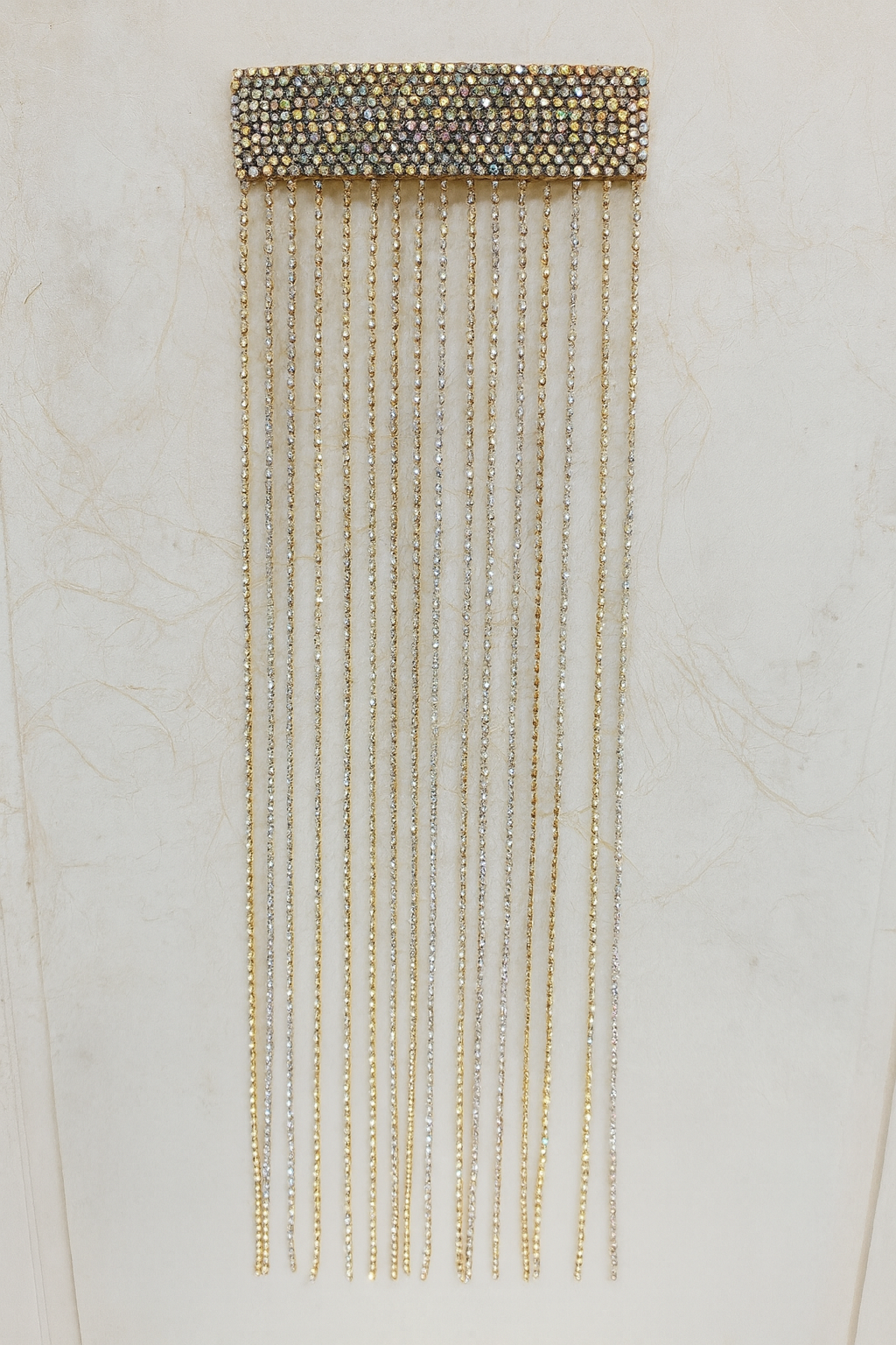 Long crystal tassel design that instantly transforms any ponytail into a glam look